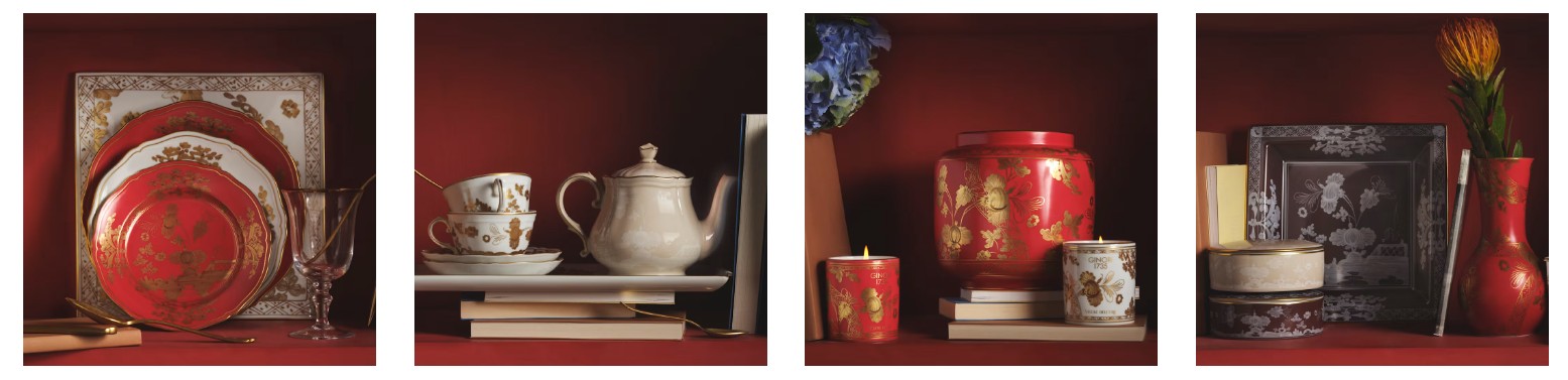 Формы посуды вдохновлены одной из культовых коллекций Ginori — Antico Doccia 1745 года. Изящный орнамент объединил восточные мотивы с изображением гвоздики — знаковым для флорентийской керамики 18 века.