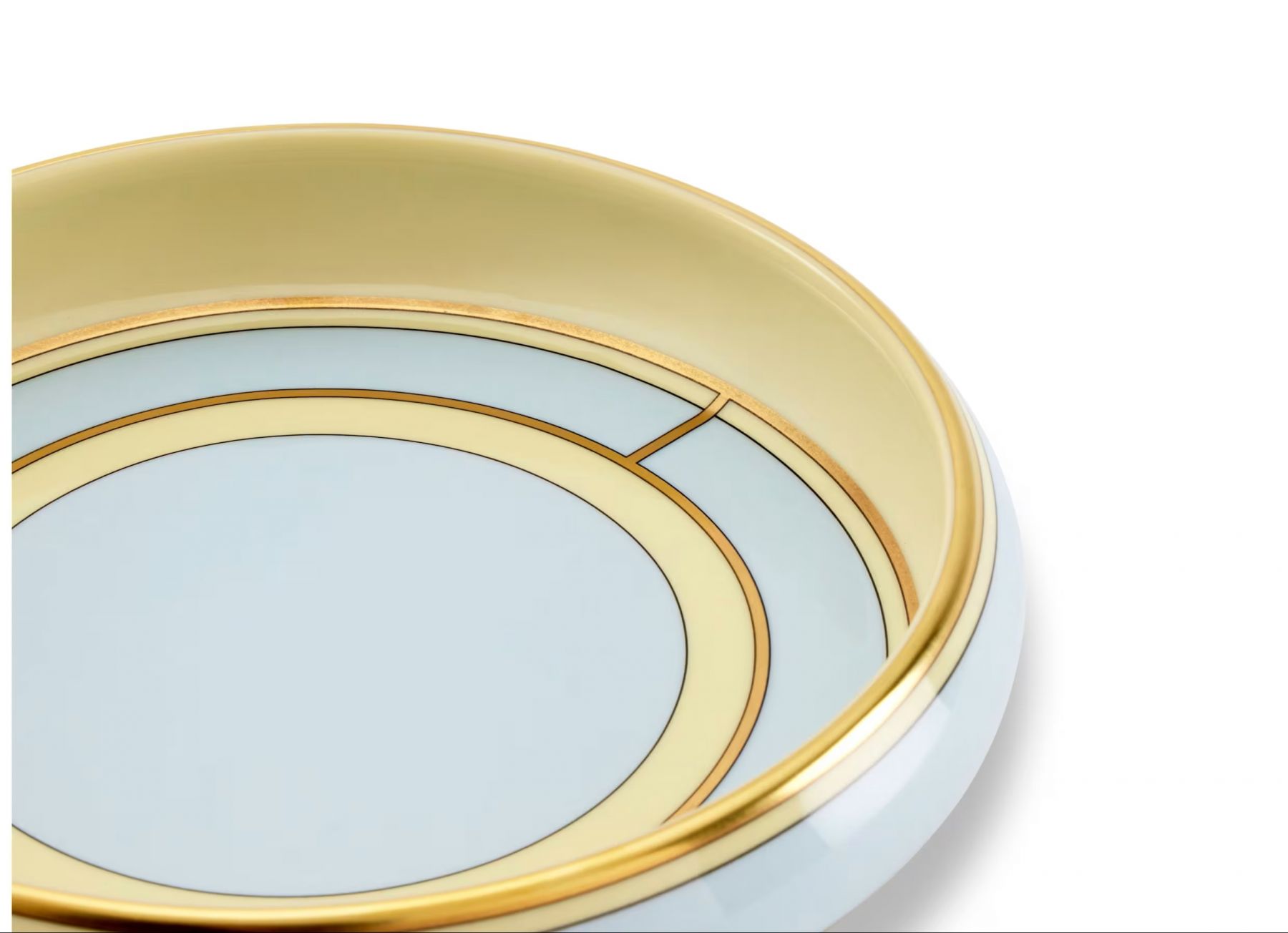 Круглое фарфоровое блюдо с голубым и золотым декором. Новая коллекция Diva.