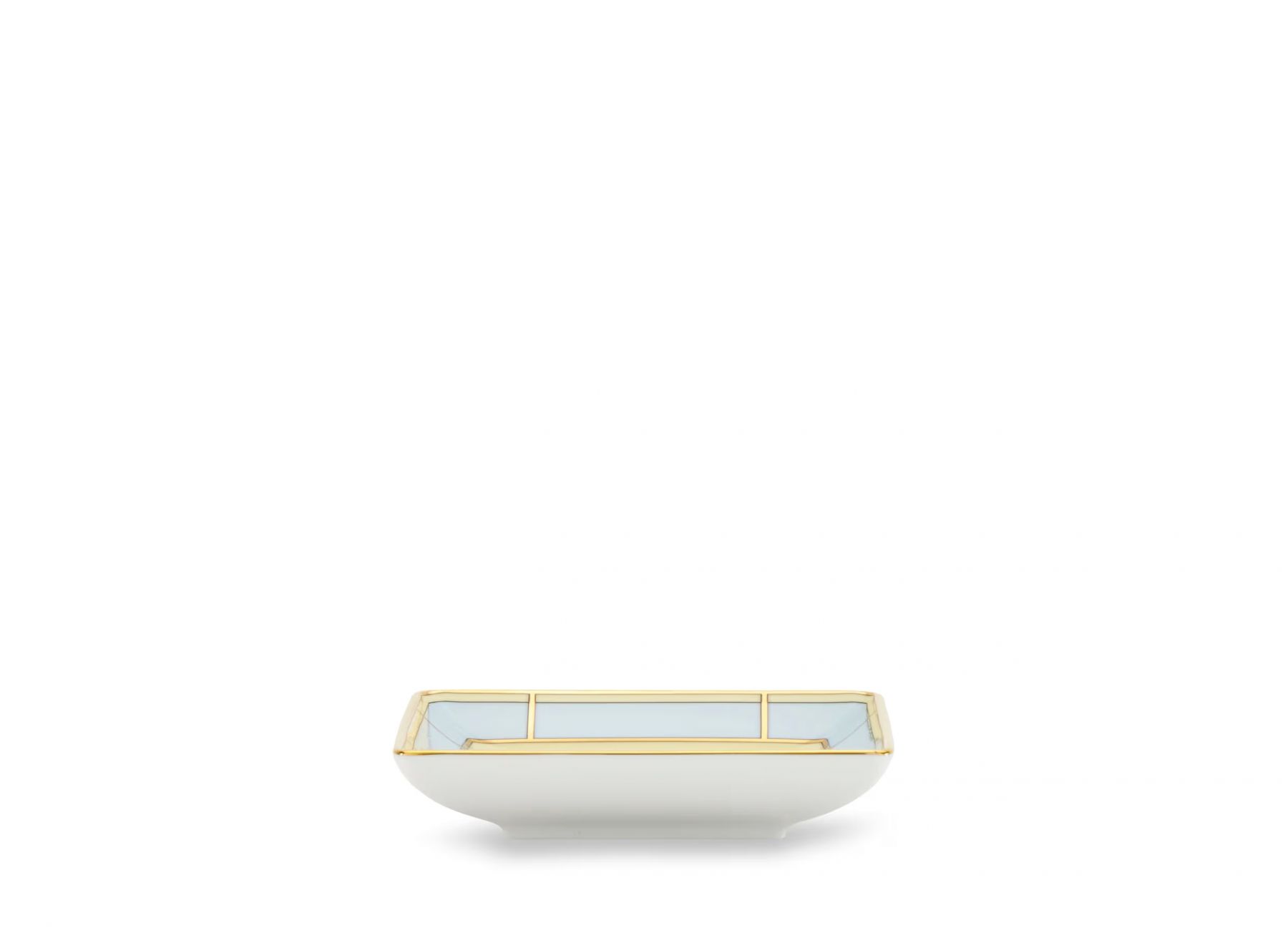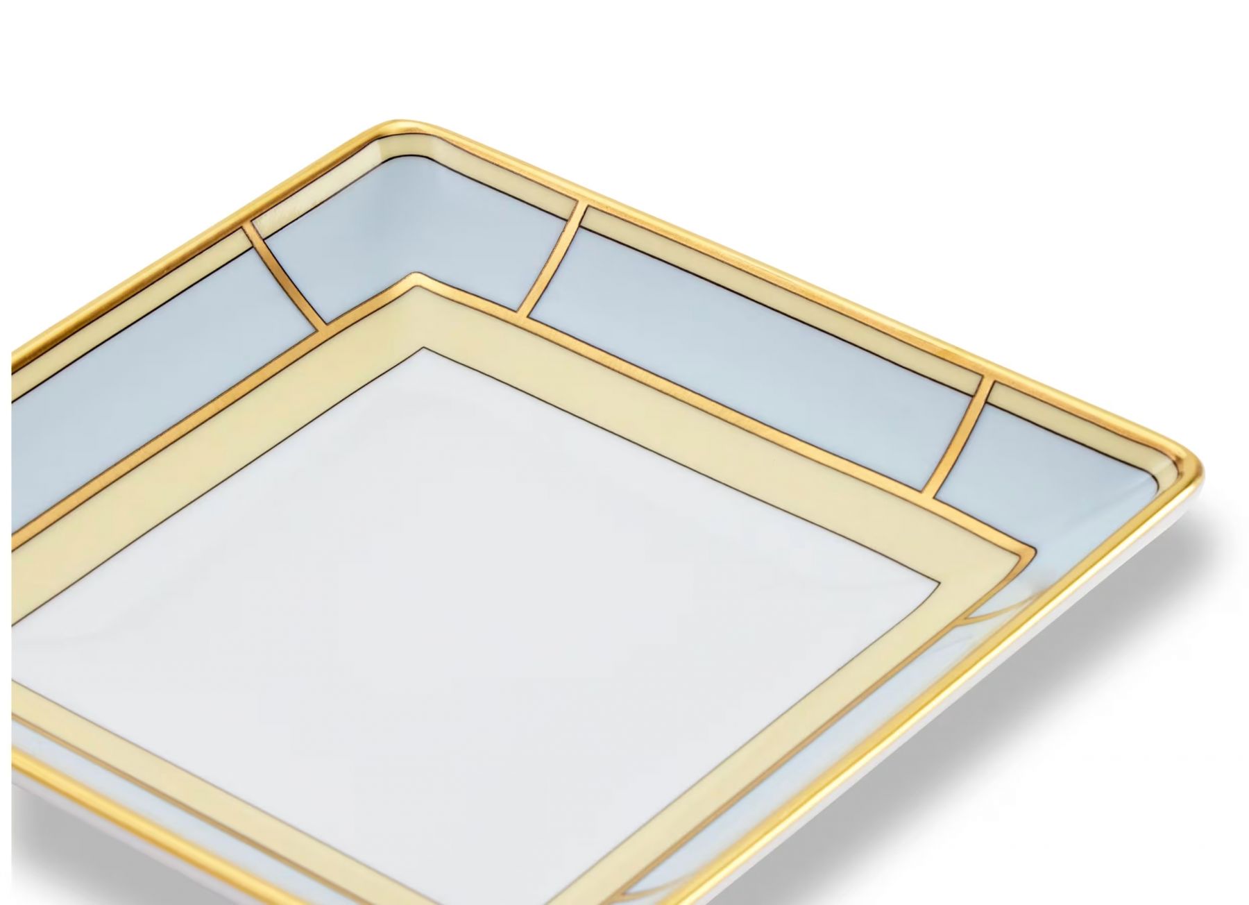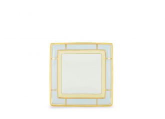 Квадратный фарфоровое блюдо для мелочей с отделкой в светло-голубых и золотых тонах. Новая коллекция Diva.