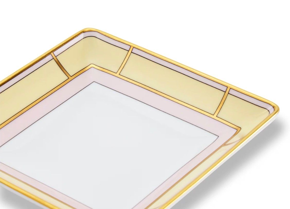 Он отличается желтым декором, украшенным изысканной резьбой из золота. Розовая рамка завершает узор, чтобы подчеркнуть центр, который можетсобрать любой ценный предмет. Доступный в трех других пастельных вариантах, он представлен в роскошной коробке, что делает его идеальным в качестве идеи подарка. Дива естьдоступен в полном ассортименте со столовыми приборами, чаем и кофе. Он сочетает в себе очарование прошлого с современным дизайном, который отдает дань уважения вибрирующей энергии Италии середины 1900-х годов и великим дивам, которые характеризовали историю.