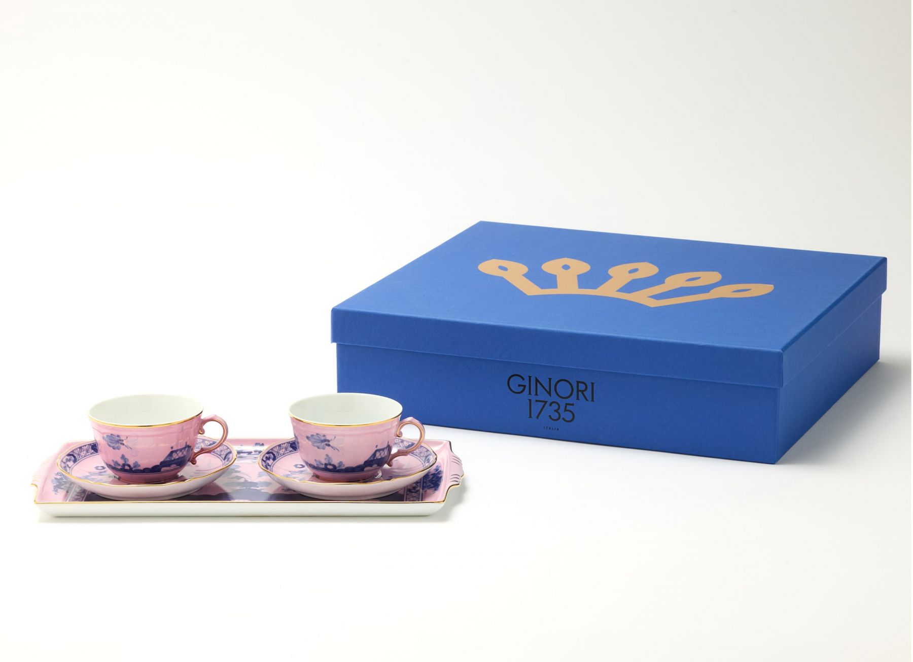 Набор из 2 -х чайных пар 220 мл., и 1 подноса, ORIENTE ITALIANO AZALEA, Ginori, 003RG00 FX2401LXGENG00124500