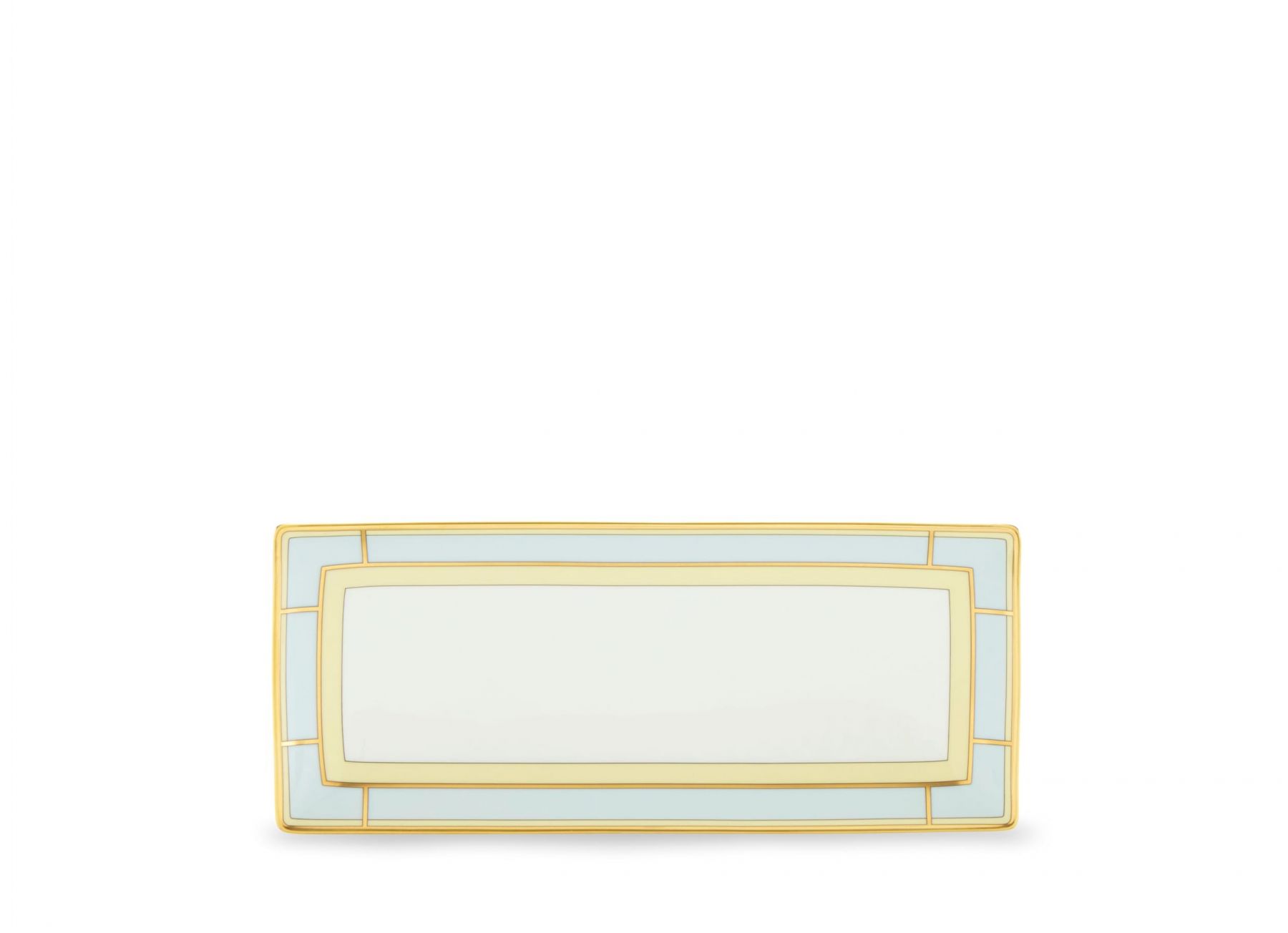 Прямоугольная фарфоровая пустая тарелка с отделкой светло-голубого и золотого цвета. Новая коллекция Diva.