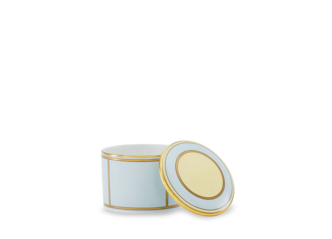 Он отличается небесным декором, украшенным золотой резьбой, которая подчеркивает дизайн. Желтый узор выделяется на крышке, создавая контрастный цвет, который освещает весь элемент. Он поставляется в роскошной коробке, которая идеально подходит как идея подарка, как для хранения, так и для организации ювелирных изделий, как прекрасный декоративный элемент для демонстрации в любой обстановке. В самых оригинальных mise en placeболее может использоваться для представления аппетитных аппетитов или микродессертов. Коллекция Diva обогащает предложение фарфора Ginori 1735 с эклектичным и динамичным стилем. В дополнение к линейке giftware, она представляет собой набор посуды, чая и кофе, который характеризуется штабелируемыми элементами, идеальнымдля полного обслуживания и легко хранится в замкнутых пространствах.