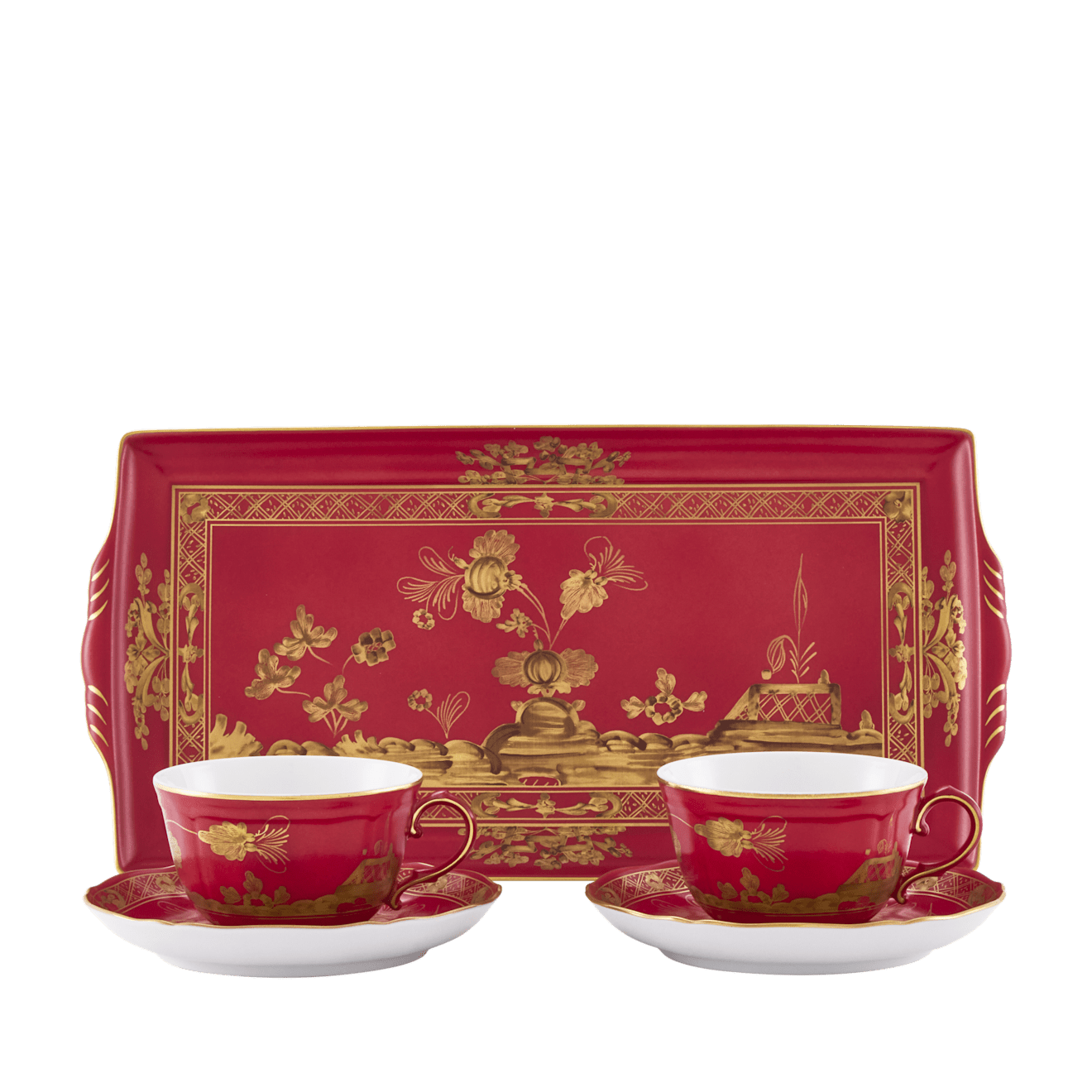 Набор из 2 -х чайных пар 220 мл., и 1 подноса, 17,7 см х 33,3 см ., ORIENTE ITALIANO RUBRUM, Ginori, 003RG00 FX2401LXGENG00132900